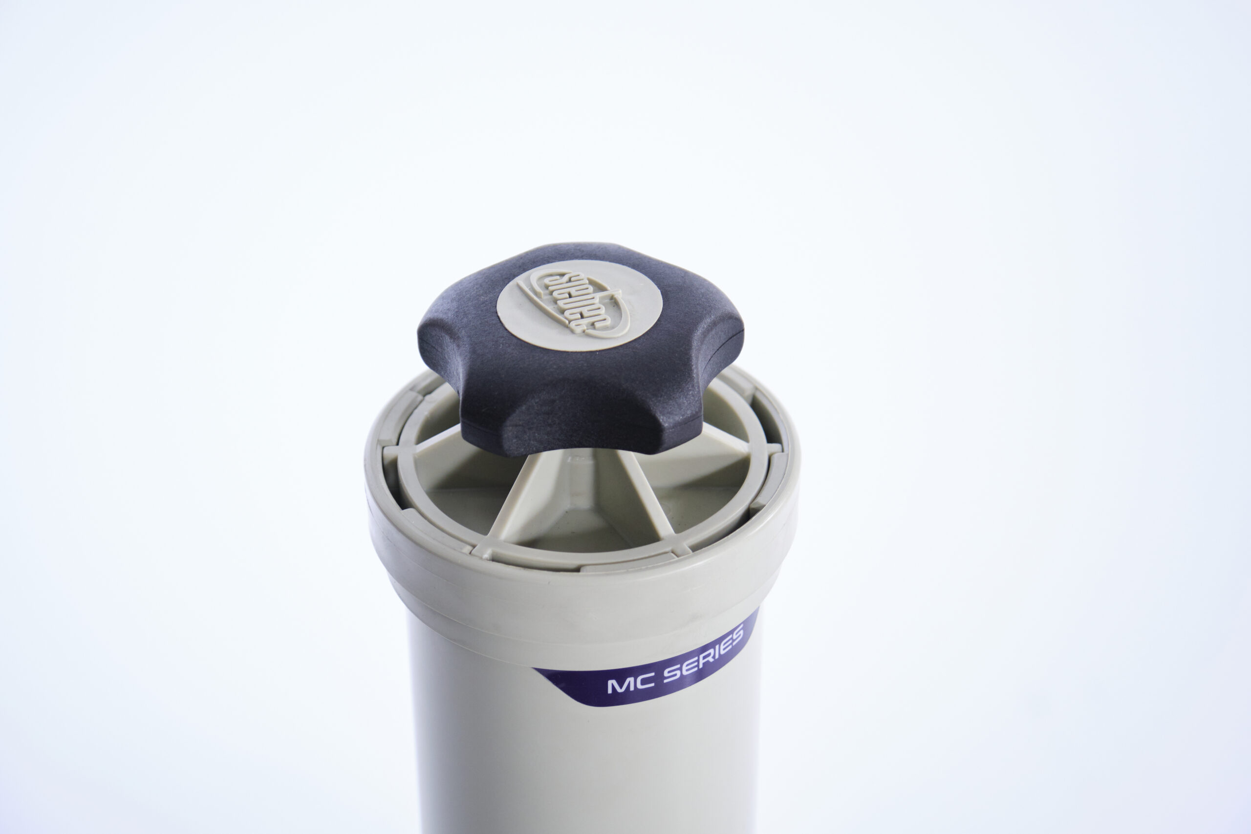 Le couvercle du filtre à cartouche se verrouille avec une unique poignée à visser. Il est ainsi très rapide et facile de remplacer la cartouche de filtration.