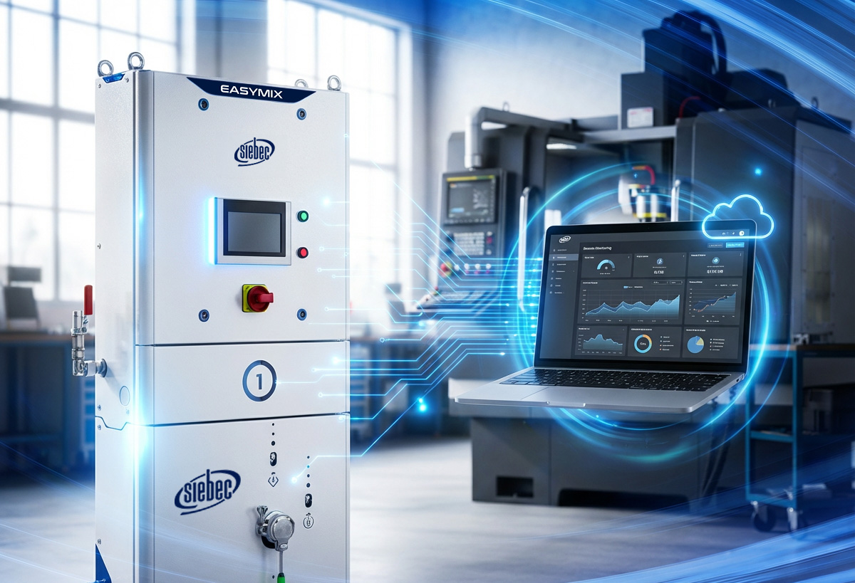 Intelligente, cette station permet le suivi qualité des fluides de coupe à distance et la correction automatique de la concentration en soluble. L'EASYMIX™ est la seule à fournir une lecture précise des propriétés du lubrifiant -en permanence-, elle corrige automatiquement la concentration en soluble et gère le niveau de lubrifiant dans le bac machine et notifie l'utilisateur via une application cloud.