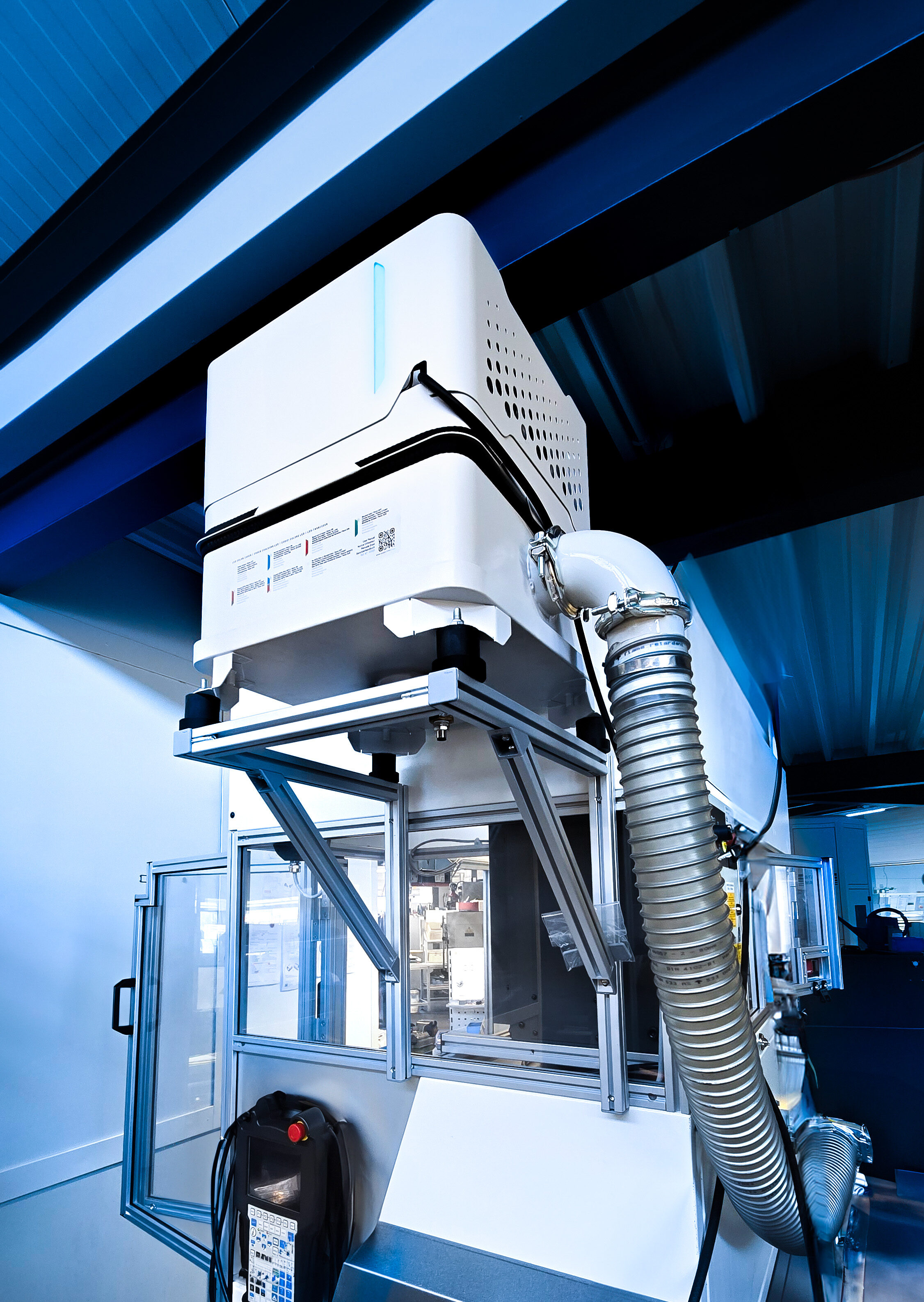 Conçu pour s’adapter aux environnements industriels les plus contraints, le système combine performance et encombrement réduit, facilitant son intégration à proximité immédiate des machines-outils.