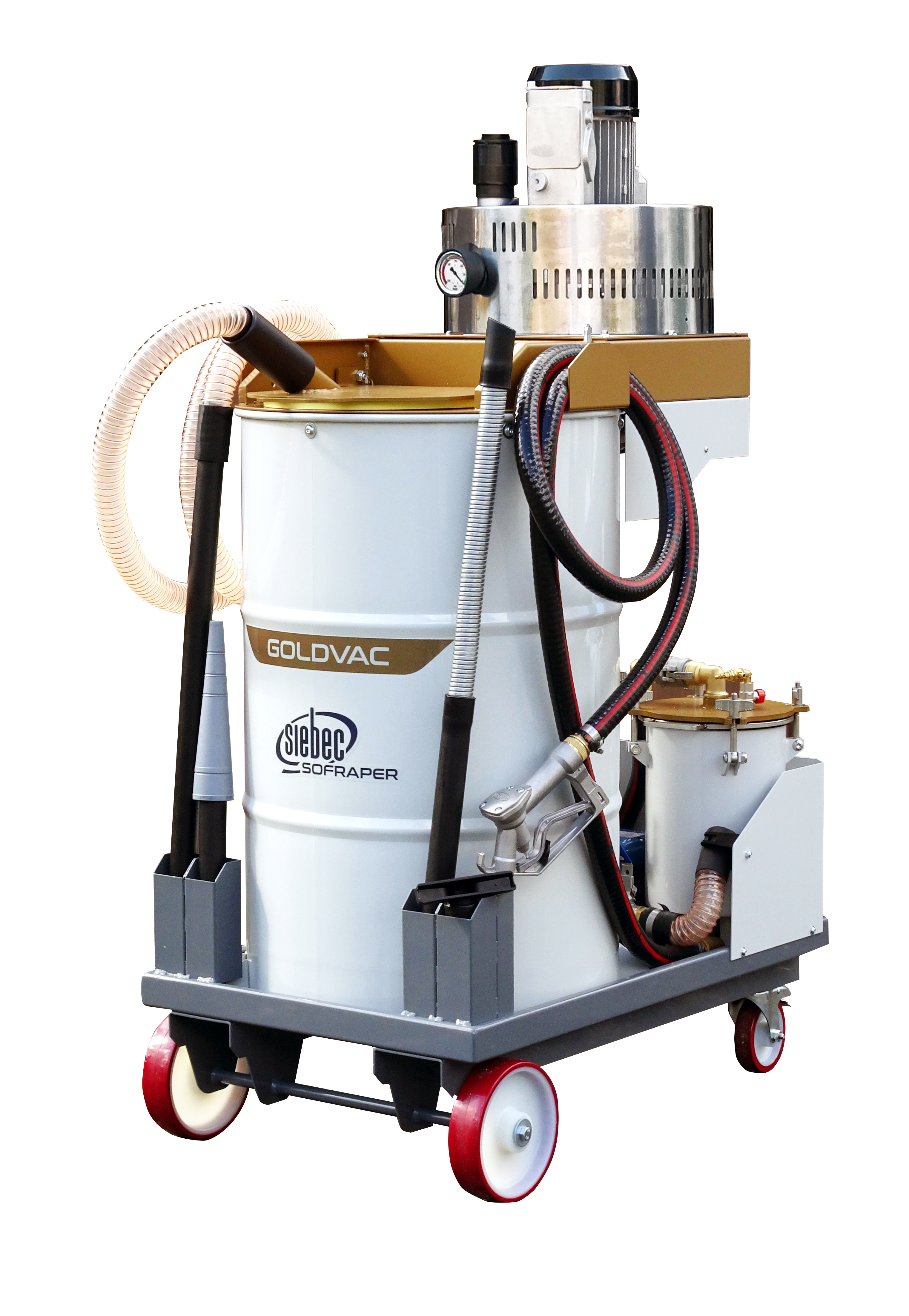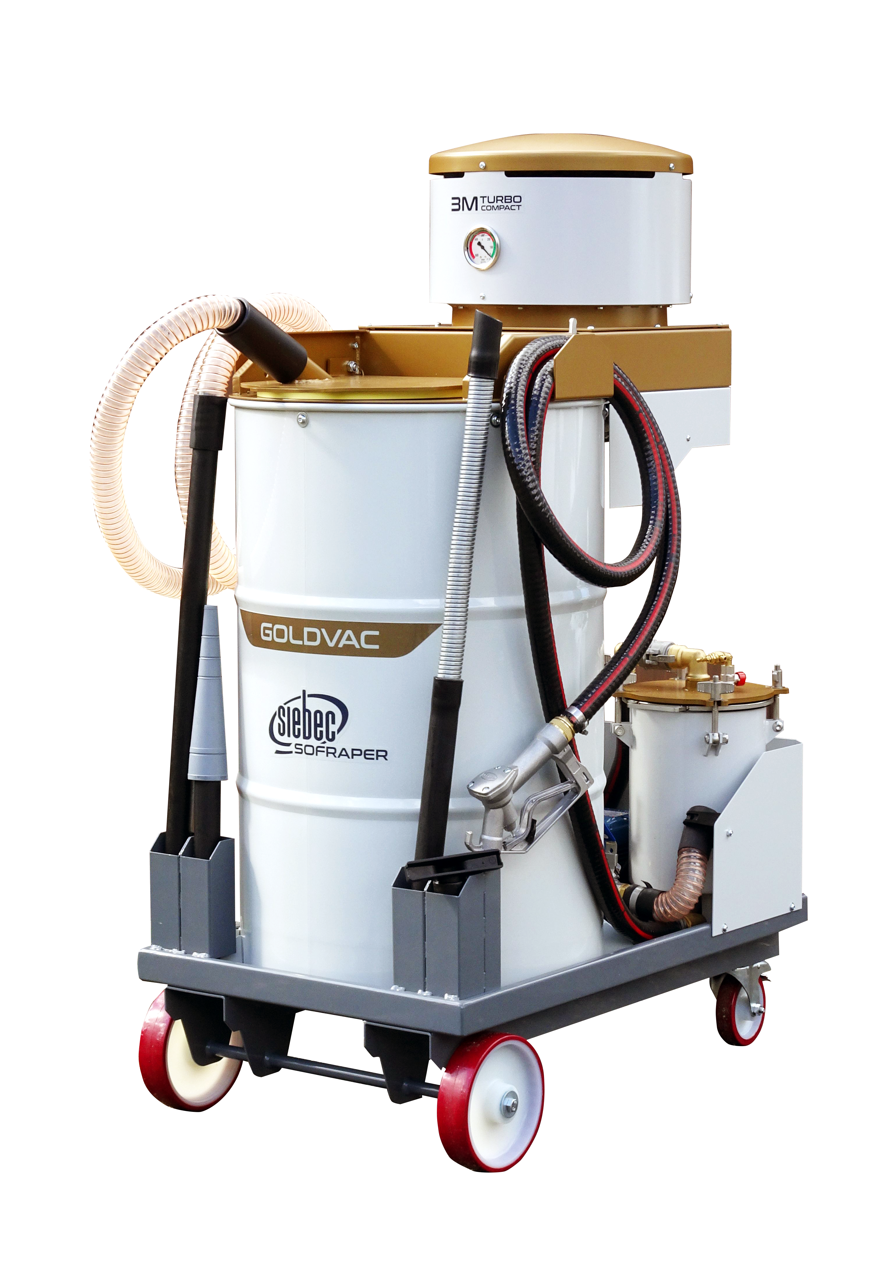 Le GOLDVAC™ est un aspirateur vidangeur dédié à la récupération des métaux précieux. Efficace aussi bien pour les vidanges des machines-outils lors des inventaires, que pour l'aspiration quotidienne des copeaux lubrifiés en production, il est indispensable à l'industrie du luxe où les poussières et copeaux d'usinage représentent un enjeu économique important.