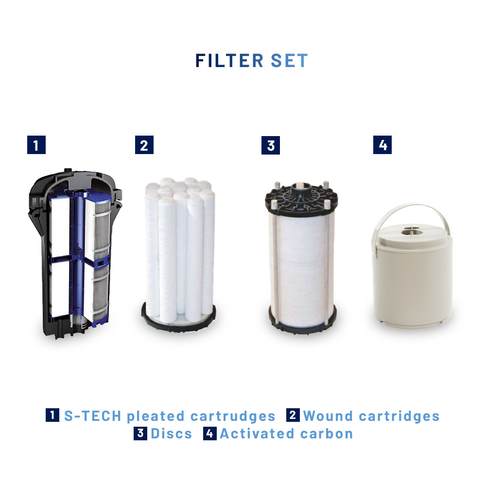 - L-TECH™ (cartuccia piegata), QUALITHERM™ (cartuccia estrusa), Vassoi filtranti, CARBONCANTECH™ (carbone attivo)